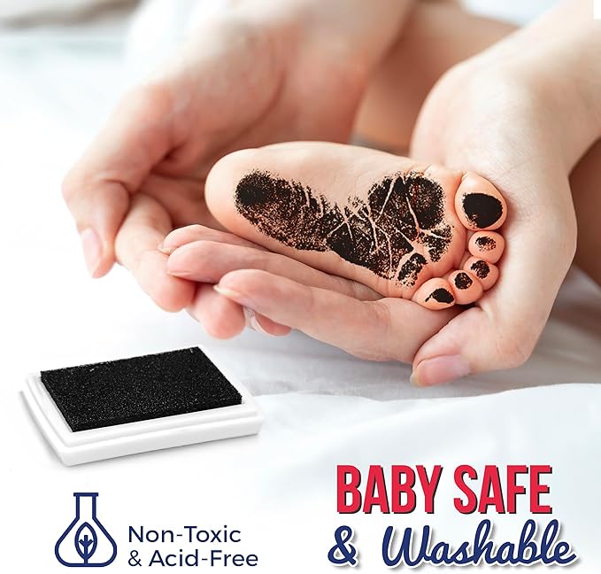 • ๐Ÿ‘ผ NONTOXIC INK PAD: Our baby ink hand and footprint kit not only features non-toxic inkpads, ensuring utmost safety for your infant's delicate skin but also includes gentle water wipes for convenient cleanup, providing a seamless and worry-free experience in capturing your little one's precious handprint and footprint.