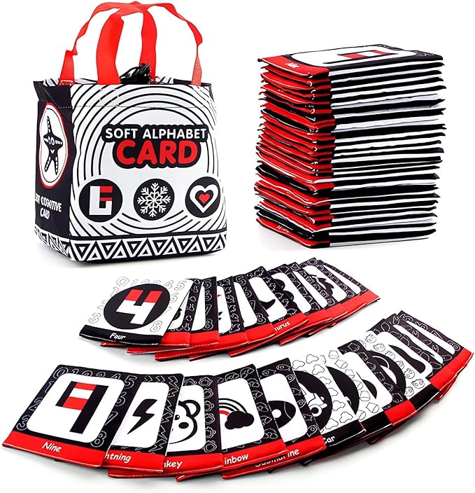 • πŸ‘ΆπŸ”€πŸ”’γ€ 26 Pieces ABC Letter and Number Cards 】 Believing that baby’s safety is more important than anything, our alphabet flash cards are made of soft polyester. These alphabet flash cards are washable and tear-resistant, sturdy and neat stitching can withstand countless washing