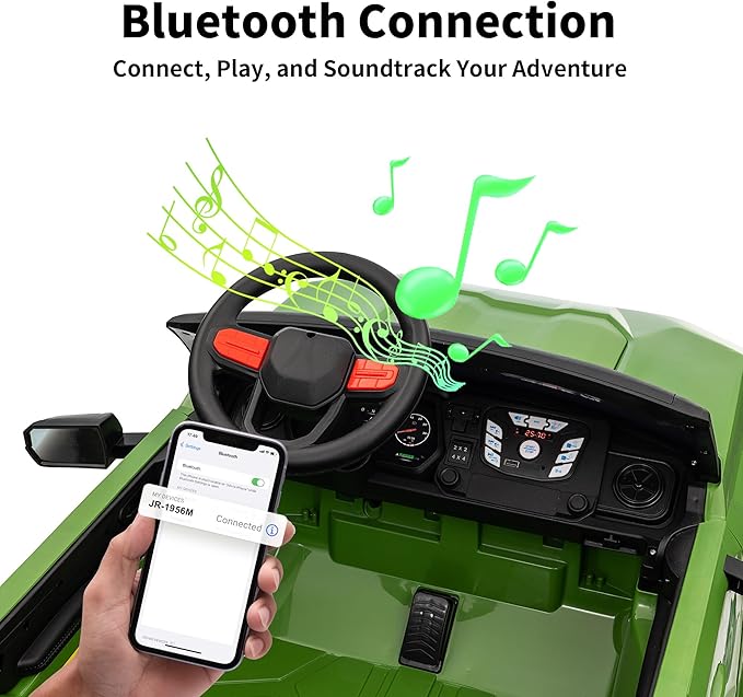 • MUSIC & WIRELESS FUNCTIONALITY: The 24V bigger kids ride on toys includes wireless connection. Allowing kids to play their favorite songs. This kids battery powered electric vehicle are perfect for gift-giving!