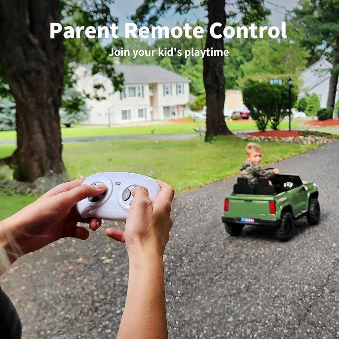 • PARENTAL REMOTE CONTROL: This 24V ride on toy car with parental remote allows parents to easily operate the electric car for safety. It offers 3 speeds, direction control, and emergency braking, ensuring a secure and interactive experience.