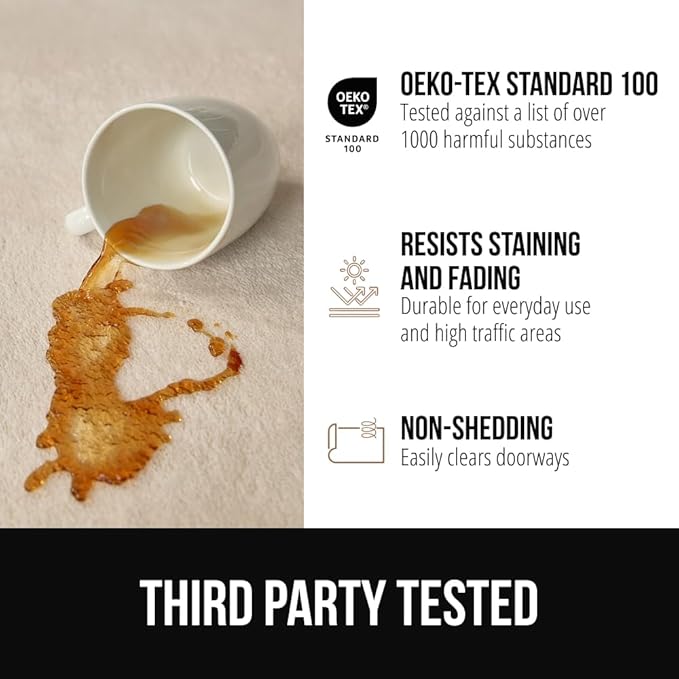 • OEKO TEX STANDARD 100 CERTIFIED: rest assured, our rugs have been given the Confidence in Textiles label, and have been tested for harmful substances according to OEKO TEX Standard 100; perfect for children, adults and pets​
