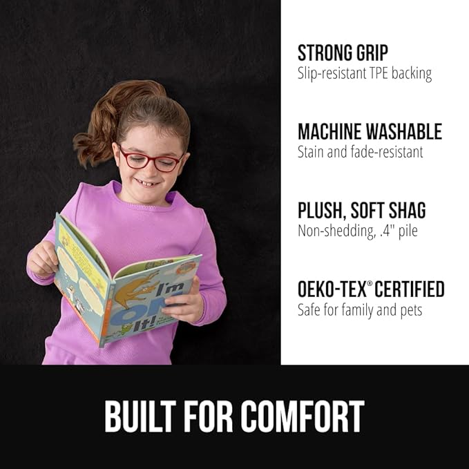 GORILLA GRIP Ultra Soft Washable Area Rug, Stain and Slip Resistant Plush Thick Carpet for Bedroom Living Room, No Shed Floor Rugs, Pet Friendly, Dorm Essentials, Kids Nursery Home Decor, 3x5, Black