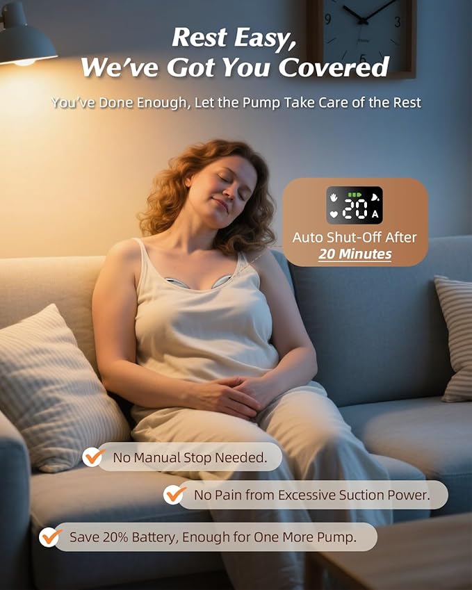 • Strong 320mmHg Suction with 19 Gentle Adjustments: Designed for sensitive moms who need both power and comfort: Our hospital-strength suction (320mmHg) outperforms standard pumps while offering 19 precision levels – start with feather-light stimulation to trigger letdown, then gradually increase to rapid expression mode without soreness.This hands free breast pump adapts to YOUR body’s response, whether you’re a first-time mom or managing oversupply, pumping during conference calls or while soothing a fussy toddler