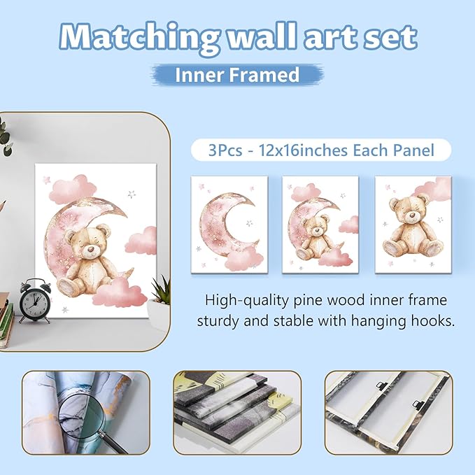 • Matching Set: This baby crib set includes a crib blanket, fitted crib sheet, changing pad cover, baby rug and three wall arts, all designed to add style to your nursery. Each piece is crafted with attention to detail, ensuring durability and long-lasting use.