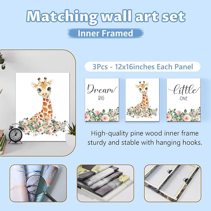 • Matching Set: This baby crib set includes a crib blanket, fitted crib sheet, changing pad cover, baby rug and three wall arts, all designed to add style to your nursery. Each piece is crafted with attention to detail, ensuring durability and long-lasting use.