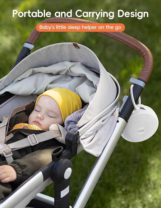 • Sleep sounds for babies on the go - nap trapped no more. Noise Sleep Machine for Baby car seat and bassinet, plus a ring to clip onto all the things. Drop proof and drool friendly.