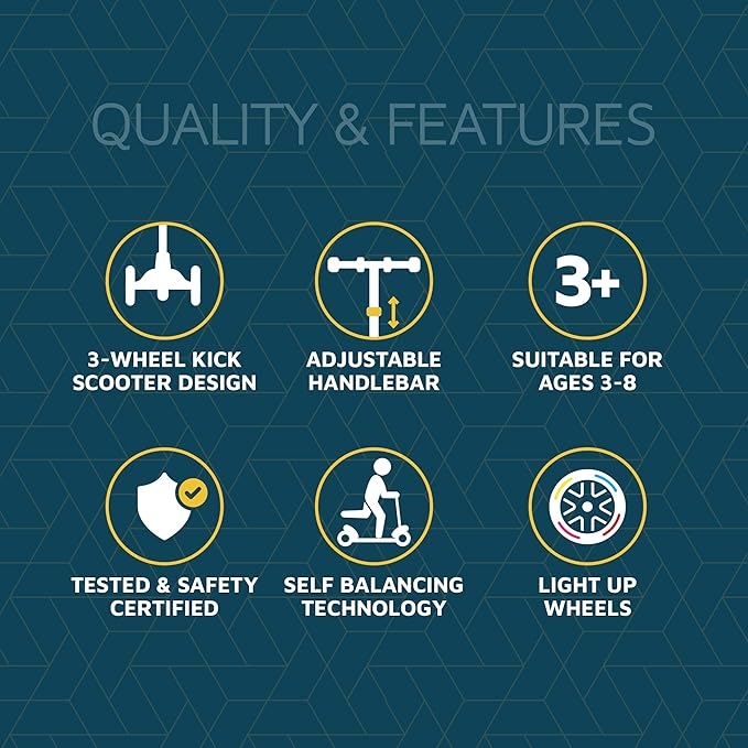 • SAFETY-CERTIFIED FOR YOUR PEACE OF MIND: The scooter has undergone rigorous safety testing and is child-safety certified. Designed with reinforced metal tube, T-bar, and wide anti-slip deck, it provides a safe, secure, and fun riding experience for kids.