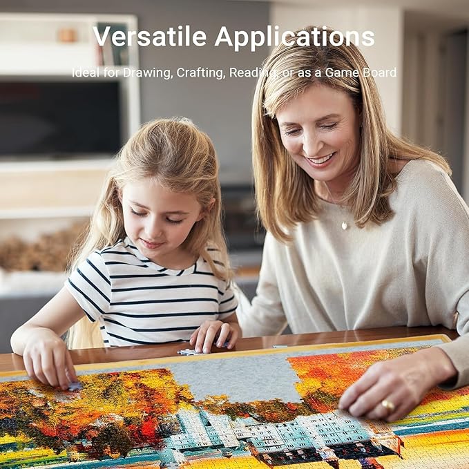 • 🧩 Stable Surface, Even When Tilted: A multi-layer composite suede mat keeps pieces secure, offering far better grip than traditional felt—ideal for 1000–1500 piece puzzles on any incline.