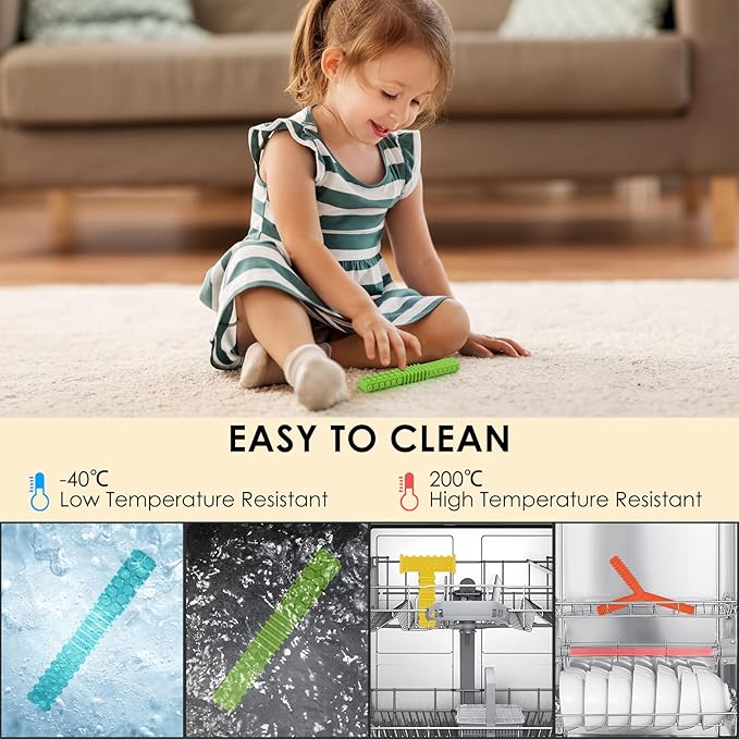 • EASY TO CLEAN: The toddler teether very easy to clean, just wash the sensory chewing toys with soapy water, or wash it with dishwasher. Our sensory chew stick can be sterilized by boiling water, steam sterilizer and sunlight. -40℃ to 200℃ Temperature resistant, we suggest cleaning it before first use and after each use