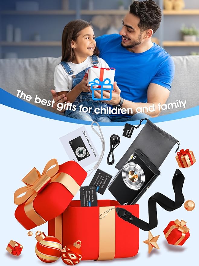 • 【Compact & Travel-Friendly with Complete Accessories】This protable small digital camera is perfect for travel or everyday use, easily fitting into your bag or pocket. It comes with a 32GB SD card, 2 batteries, and a Type-C charging cable, making it ready to use anytime. The 2.8-inch IPS screen provides an intuitive interface, so you can quickly view, edit, and share your photos. Whether as a gift for friends and family or a companion to document your own life, this camera is the ideal choice.