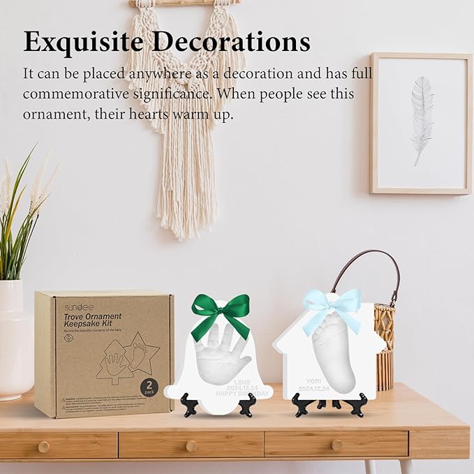 • Record Your Baby's Growth:Create Meaningful memories Don't let newborn exhaustion erase those precious memories.This baby souvenir clay ornament captures their perfect little handprint, footprints, fingers and toes. It's a must for newborns!