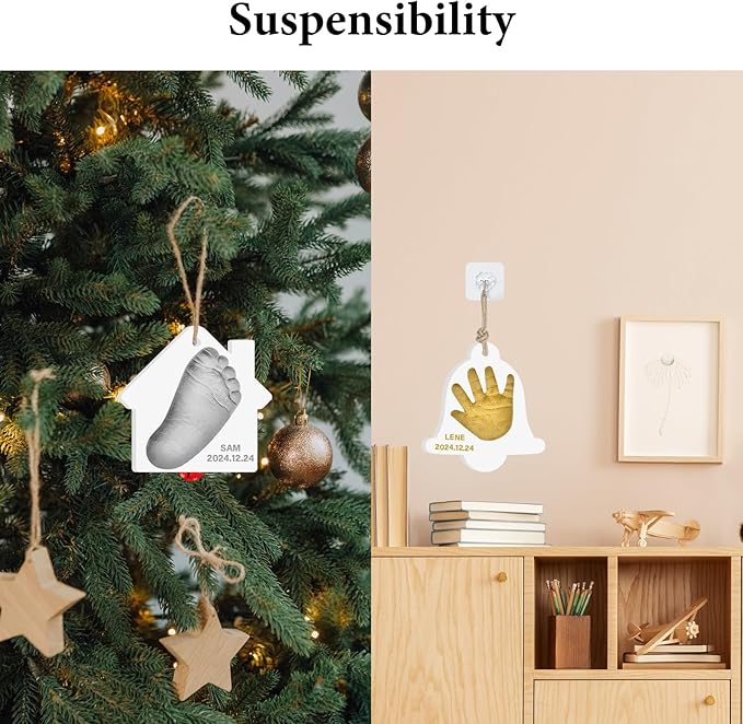 • Creative Baby Gifts:Surprise your guests by creating a unique set of precious souvenirs with our baby Handprint kits. Hang it on your wall or Christmas tree to add a touch of sincerity to a special occasion.