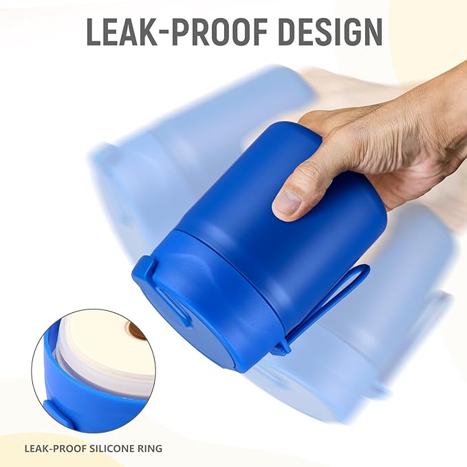 • 17oz Leak-proof thermo for hot food: Our insulated food jar has a 17oz capacity for holding as much food as you want, the insulated food canister is designed with a safety sealing lid to prevent liquids from leaking.