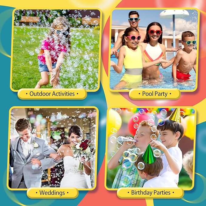 • Ideal Gifts for Any Occasion - The toddlers bubble maker comes in a beautifully packaged box with complete accessories . It is the perfect gift for kids toddlers over three years old. The bubble gun blaster also makes a great bubbles toy bag for these indoor and outdoor occasions, perfect for theme parties, carnivals, birthday parties, camping trips, Halloween, weddings, school classrooms, Easter baskets, outdoor water toy play activities, beaches, backpacking, backyard Bubble party etc.