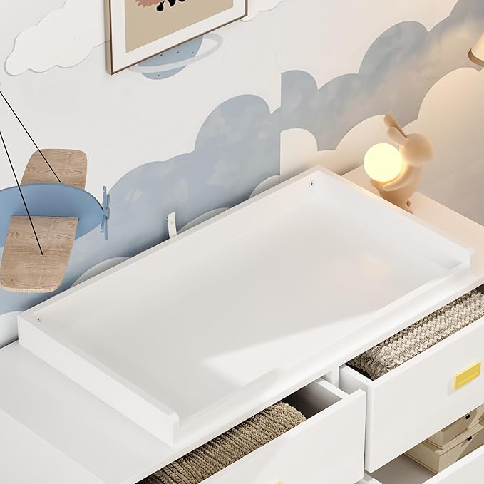• Dresser with Changing Table - Baby dresser for nursery assembled overall dimension 45.3"W x 18.9"D x 30.1" H. Top of the dresser chest provides an appropriate height to place decor stuffs. The top guard is a detachable design, you can keep or remove it.