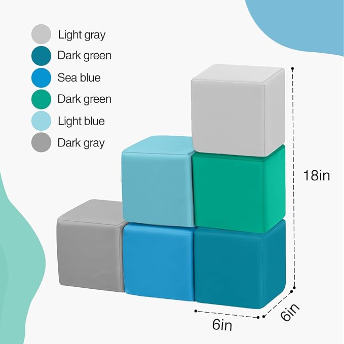 • Foam Blocks for Early Learning: Our 6-piece toddler blocks of foam cubes covered in durable, waterproof PU leather features vibrant colors designed to grab kids’ attention and foster early color recognition, creating a vibrant toddler zone to explore and learn through stacking, building, and imaginative adventures