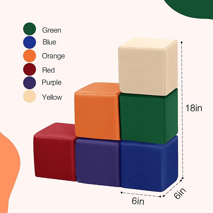 • Colorful Foam Blocks for Early Learning: Our 6-piece toddler blocks of foam cubes covered in durable, waterproof PU leather features vibrant colors designed to grab kids’ attention and foster early color recognition, creating a vibrant toddler zone to explore and learn through stacking, building, and imaginative adventures