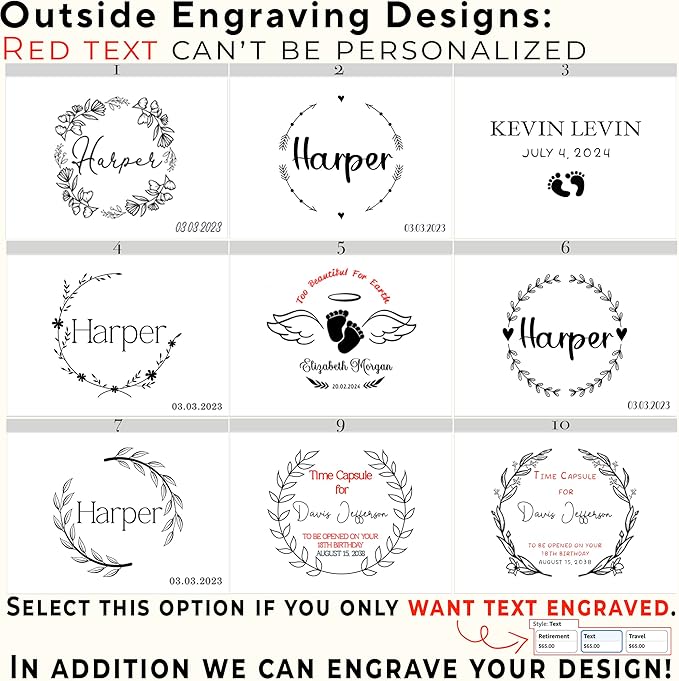 • Customizable: personalize kids keepsake storage with various available designs, including a name and date. We’ll use the font style showcased in the photos. The inside lid's side can be engraved with your text also(different font options). Create a unique and meaningful gift!