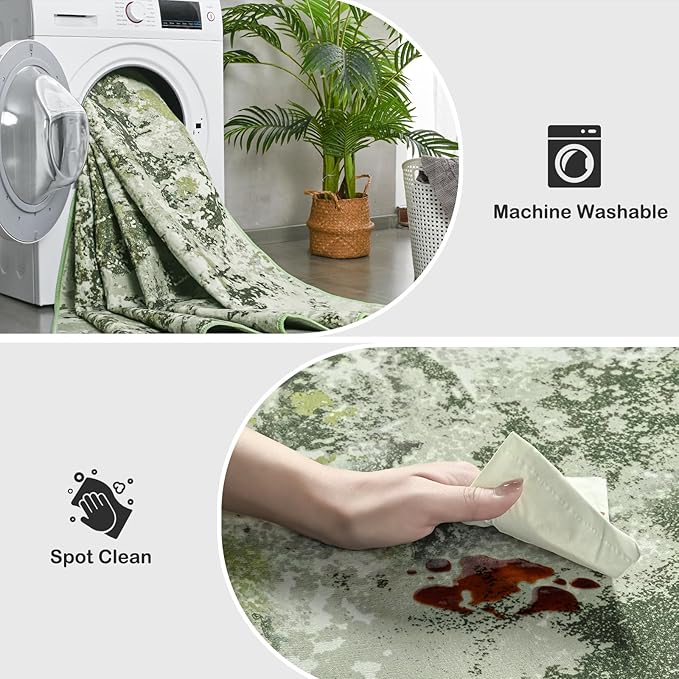 Kelarea 4x6 Rug for Living Room, Green Washable Non-Slip Rugs, Low Pile Soft Modern Abstract Carpet for Bedroom, Kitchen, Dining Room, Classroom, Dorm, Nursery, Home Office