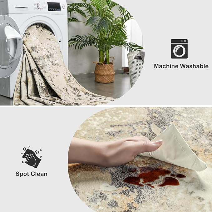 • Skid Resistant Backing:With an anti-slip backing, our living room rug ensure safety in your home by staying securely in place in high-traffic ares. This backing serves as a reliable foundation for frequently used areas such as the living room; dining room; kitchen; and hallways. Even if running on it quickly, it not moves and slides around