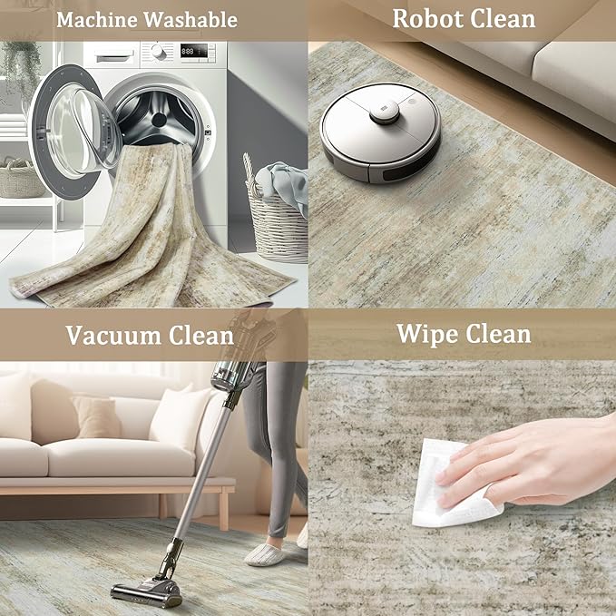 • Machine Washable Rug: The added bonus of it being machine washable makes it a breeze to maintain and saves you time. You no longer have to worry about spills or stains ruining your rug. Simply throw it in the washing machine. Regularly using a vacuum cleaner(Just low power)to remove dust or hair for daily care. Please remember not to use bleach