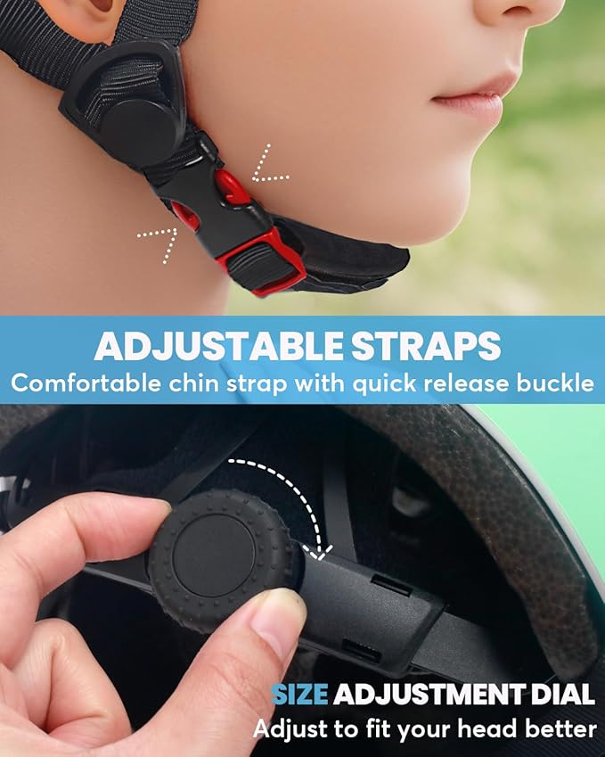 • Adjustable Fit for Ages 2–14 - Designed with an easy-to-use rear dial and adjustable straps, this helmet fits head sizes Small (18.9–21.25", 48–54cm) and Medium (21.5–22.75", 55–58cm), growing with your child from toddler to teen.