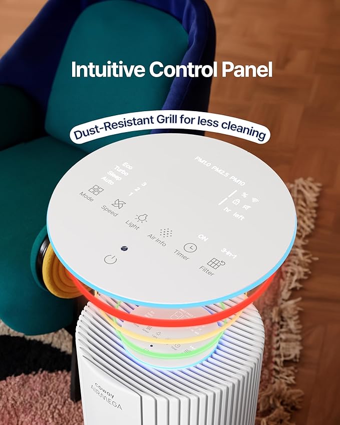 COWAY Air Purifiers for Large Room Whole Home Up to 3,285ft², True HEPA Filter for Smoke, Allergen, Pet Dander, Odor, PM(1, 2.5, 10), AQI, Turbo Eco Mode, Energy Star, 3yr Warranty, Airmega 450 White