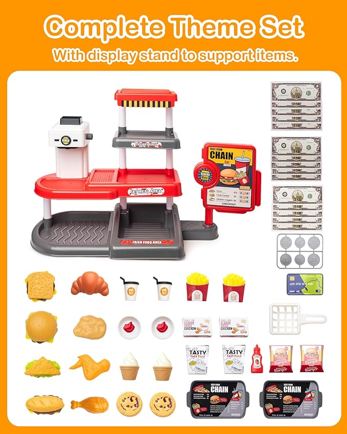 Kids Play Tent, Pop Up Play Tent Burger Theme with Complete Toy Set, Play Toys Play Set for Kids Indoor Outdoor Pretend Play