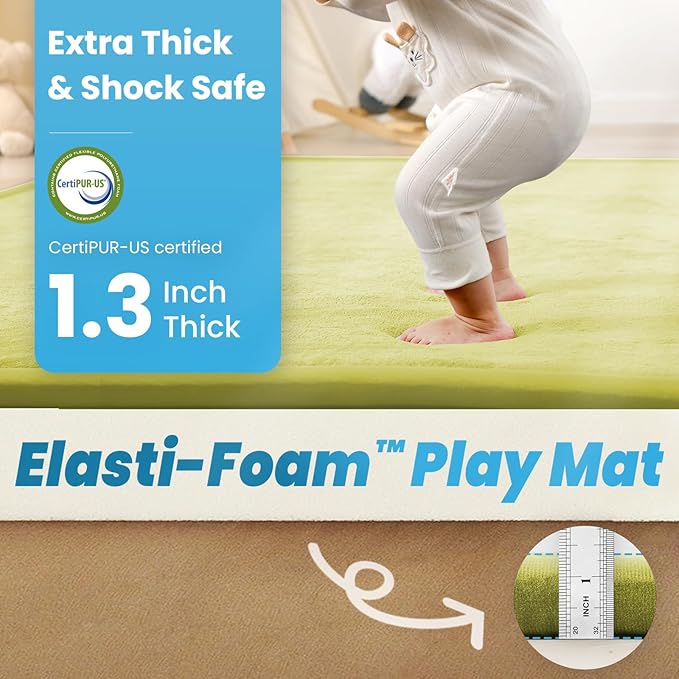 • Extra-Thick Cushioning for Impact Absorption: Featuring 1.3-inch premium memory foam,this baby floor bed mat offers superior shock absorptionβ€”softer than standard matsβ€”to reduce bumps and injuries when toddlers roll or crawl off surfaces.