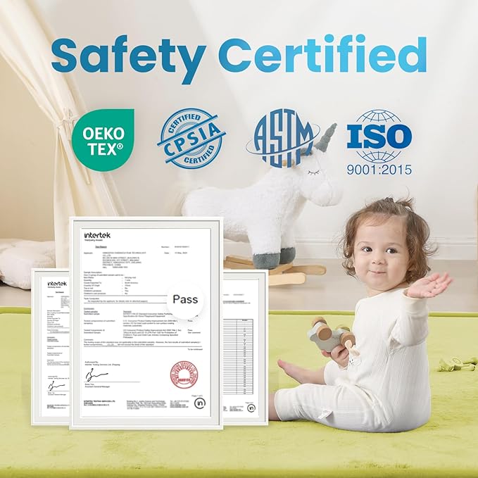 • Safety Certified & Fall-Proof Protection: Made with OEKO-TEX certified fabric and CERPITUR-US certified elasti-foam, this anti-fall mat meets ASTM/CPSIA safety standards, providing a soft barrier to prevent baby from rolling off beds or furniture. Perfect for bedside fall protection and safe sleep.