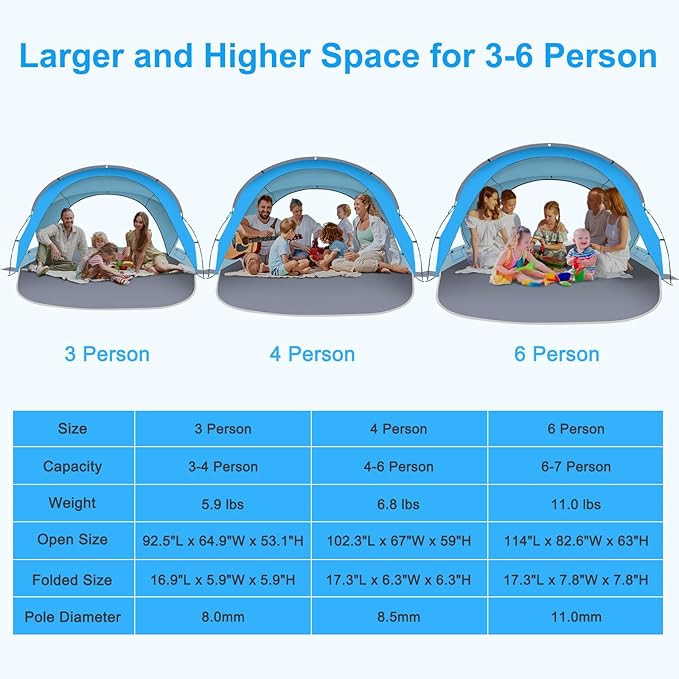 • UPF50+ Protection: Featuring silver-coated fabric, this beach shade is engineered with superior Anti-UV sun protection, effectively blocking at less 98% of harmful UV rays, ensuring you and your family enjoy comfortable and cool days at the beach