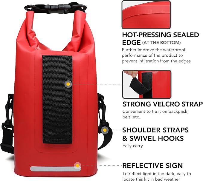 250 PCS Waterproof First Aid Kit, Roll Top Reflective Boat Dry Bag Bug Out Bags, Emergency Medical Kit Ideal for Boating, Camping, Fishing, Kayaking, Floating, Red
