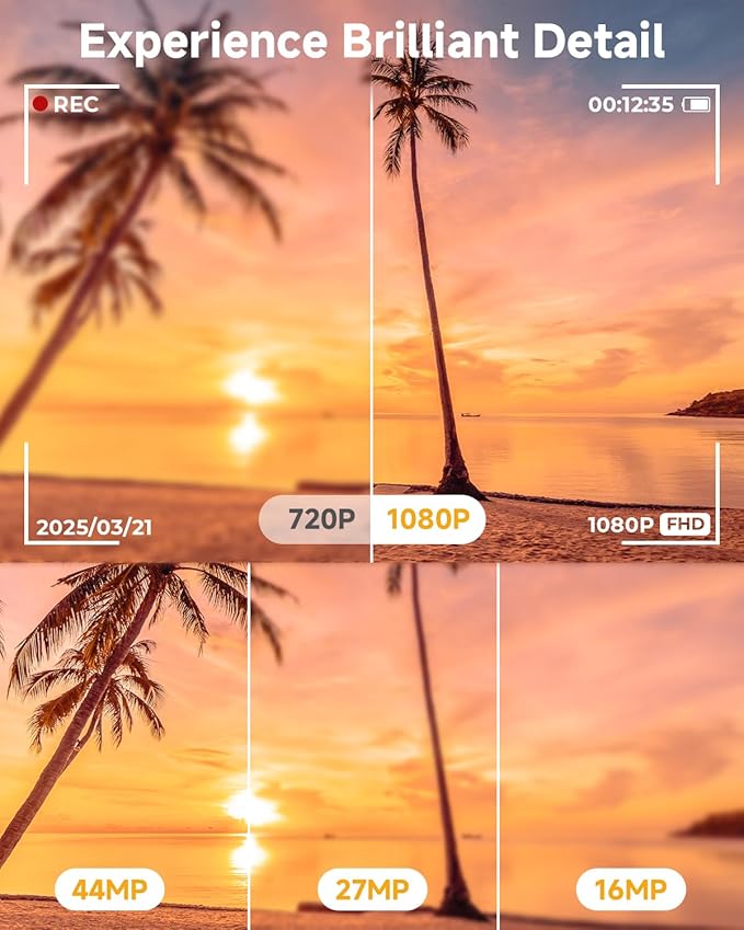 • 【44MP Photo & 1080P FHD Video】:This compact digital camera is equipped with Upgrade CMOS technology ensures precise detail. Mini camera support 44MP photos and 1080P UHD video recording and features a 2.4inch Ultra HD display. It comes with a 32GB memory card to record fun and memorable moments at any time.