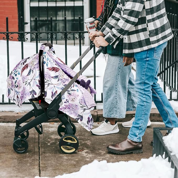 Car Seat Cover Baby, Infant Car Seat Canopy Covers for Newborn Girls Boys, Soft Breathable Mink Carseat Covers Stretchy Multi-Use Nursing Cover for Stroller Baby Car Seat, Purple Flroal