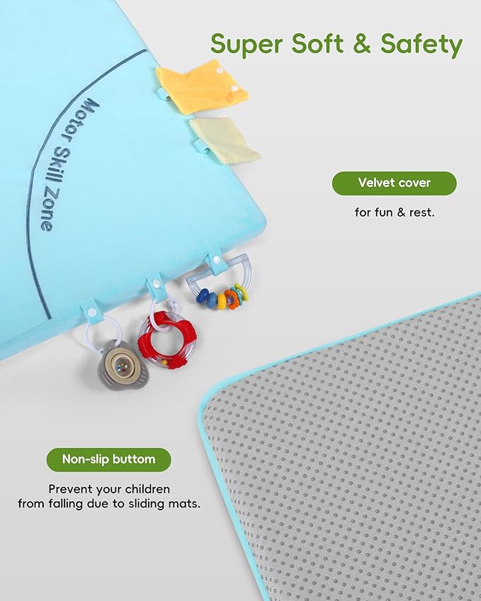 • How to Care: Upon opening, the play mat will quickly expand. Place the mat on a flat surface and wait 12-24 hours to fully expand before use. For daily cleaning, gently pat the mat to remove surface dust and debris, or use a vacuum with a soft brush attachment to gently vacuum along the texture of the velvet cover. The high quality anti-slip bottom ensures the play mat looks as good as new even after frequent washings. Available in light grey, blue, green and beige as ideal gift choice.