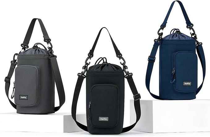 • [Water Bottle Holder with 2 Straps] Water bottle sling bag has 2 detachable and adjustable straps. One can be used as a top handle to hang on other objects such as luggage handle or backpack strap for hands-free convenience, while the other can be adjusted in length (28" to 58") for various carrying methods such as handbag, shoulder bag, sling bag, crossbody bag and so on.