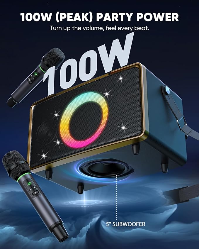 • WIRELESS MIC: Bluetooth speaker with microphone supporting 3 modes (KTV/Reverb/Speech). Bring it to your living room for family party sessions, or take it outdoors for park barbecues and picnics—turn any space into your personal stage.
