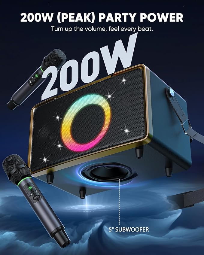 • 200W OUTPUT & 5" SUBWOOFER: GFEEN party Bluetooth speaker delivers powerful 200W peak power and a 5-inch subwoofer, delivering an immersive and powerful bass experience for music enthusiasts of hip-hop, rock, classical, electronic, and beyond. Creates a concert-like audio experience.