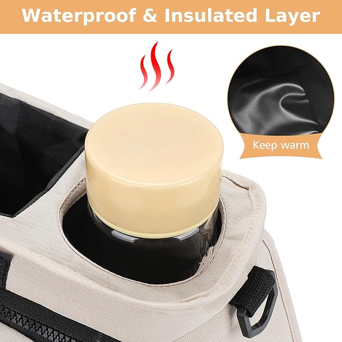 • Multi Structure: This stroller storage organizer equipped with multifunctional structure: Insulated cup holders on both sides to place baby bottles and drink cups; The middle storage compartment can accommodate baby diapers, wipes, pacifiers, teething toys and other accessories; Equipped with a detachable and portable small bag, it is convenient for mothers to store important items such as cell phones, wallet etc.