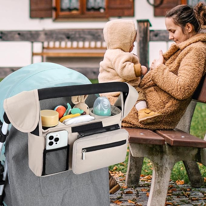 • Multiple Usage Methods : It can be hung as a stroller cup holder organizer on the stroller. When you don't need to use a stroller, you can also install the accompanying strap and carry this organizer bag for easy outing.