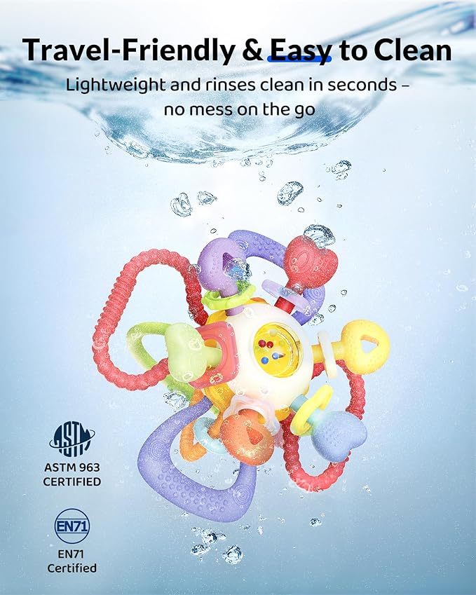 • Vibrant & Engaging Design – With bright colors and fun rattle sounds, this toy is more than just a teether. It stimulates your baby’s auditory and visual senses, keeping them happily engaged and entertained, whether it’s for a baby shower gift or holiday presents