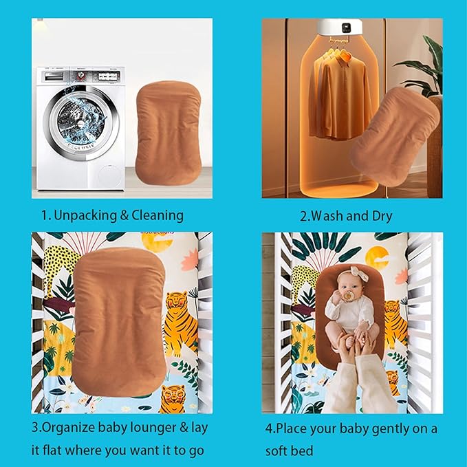 • Easily Washable Cover: LOEVIN'S baby lounger is designed for newborns up to 12-month-olds, offering a safe and cozy space for your little oneโ€™s early-stage use and comes with a detachable cover that's easy to remove and machine wash--keeping it fresh and hygienic with minimal effort