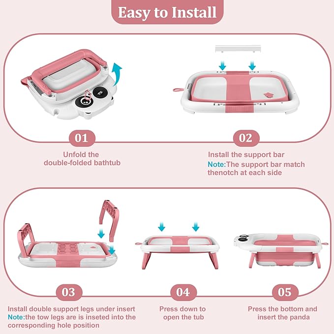 • Double-Fold & Detachable Leg Support: Our collapsible baby bathtub features an ingenious double-fold design, it even folds in half, folding the body into a square with a thickness of 4 inches. Convenient for storage and saving space!