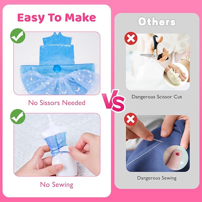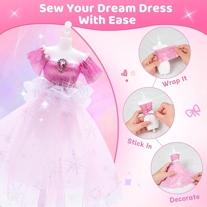 • ✨Simple to Create: With step-by-step instructions, kids can easily make 8 different dress styles. Just wrap, stick, and decorate—simple steps to craft a beautiful dress on their own. It’s a fun way to boost hands-on skills and spark imagination!