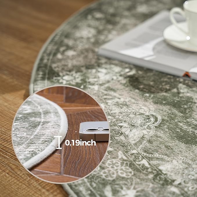 jinchan Round Rug 7ft Area Rug - Green Vintage Floor Mat Kitchen Indoor - Washable Circle 7' Thin Floral Print Carpet Retro Farmhouse Non Slip Dining Room Living Room Bedroom Office