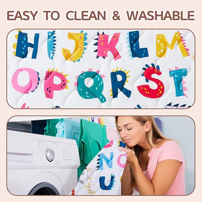 • Developmental Design Meets Playful Learning - Featuring vibrant dinosaurs and colorful alphabet patterns, this engaging playmat combines fun with early education. The high-contrast designs stimulate visual development while sparking curiosity about letters and prehistoric creatures. Perfect for growing minds, the playful graphics encourage sensory exploration, language discovery, and cognitive growth during tummy time and play. The educational themes blend seamlessly with modern nursery decor, creating an inspiring space for your little explorer's developmental journey.