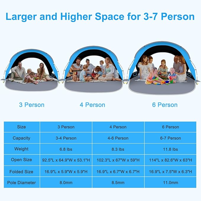 • UPF99+ Protection: Featuring dark-shelter fabric, this beach shade is engineered with superior Anti-UV sun protection, effectively blocking at less 99% of harmful UV rays, ensuring you and your family enjoy comfortable and cool days at the beach