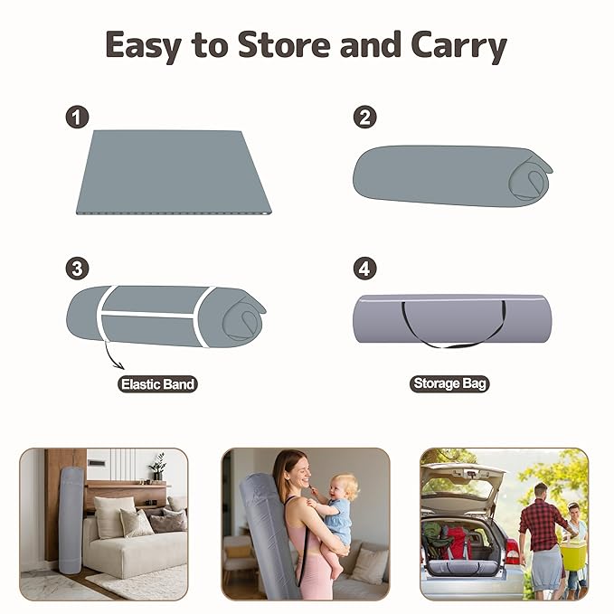 • With Storage Bag - The baby floor play mat includes an exclusive elastic strap and a compact storage bag for easy folding, travel and storage. Fits in a stroller, car trunk or closet - ideal for families on the go