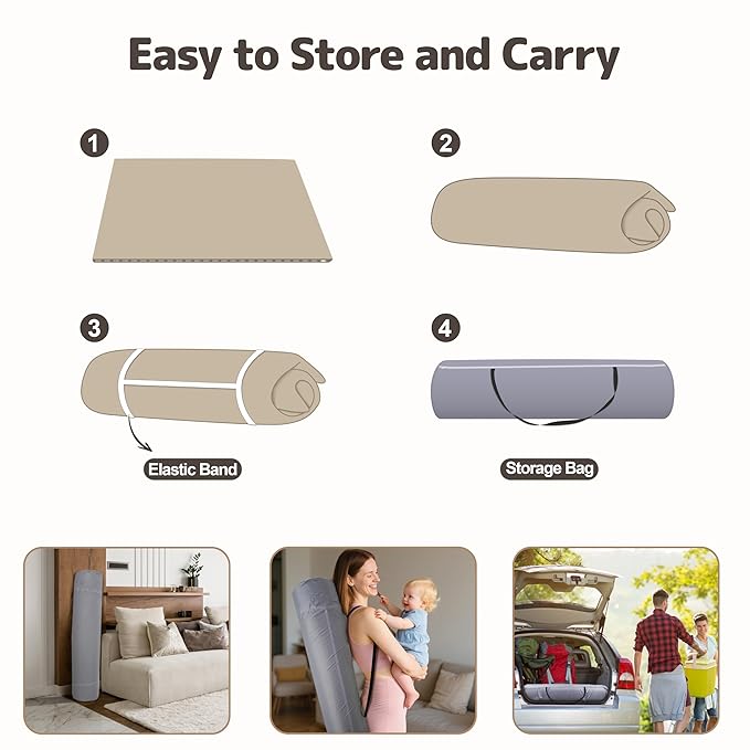 • With Storage Bag - The baby floor play mat includes an exclusive elastic strap and a compact storage bag for easy folding, travel and storage. Fits in a stroller, car trunk or closet - ideal for families on the go