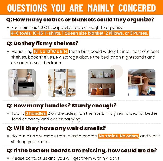 • γ€πŸ― π™Žπ™π™π™Šπ™‰π™‚ π™ƒπ˜Όπ™‰π˜Ώπ™‡π™€π™Ž & π™Œπ™π˜Όπ™‡π™„π™π™” π˜Ώπ™€π™π˜Όπ™„π™‡π™Žγ€‘These closet organizer bins feature 3 built-in handles, reinforced for better carrying and moving, especially for wall-mounted closet shelves. Made of stiff plastic boards and durable non-woven fabric, these bins for organization could remain structured for years, also odorless for safer use.